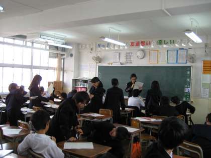中間テストの解答用紙を返却しています。
