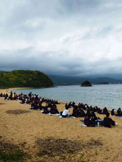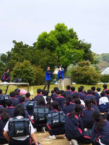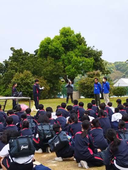 昼食が終わり、入所式を行っています。施設の方から、施設内でのルールの説明を聞きました。みんなが気持ちよく過ごせるように、協力しましょう。