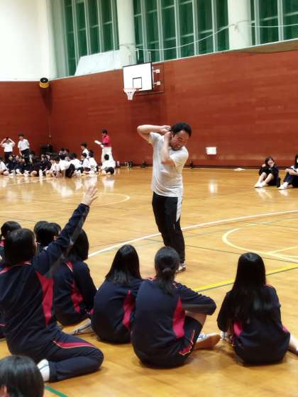 いよいよ最後の競技です。担任の先生が何かを表現しています。