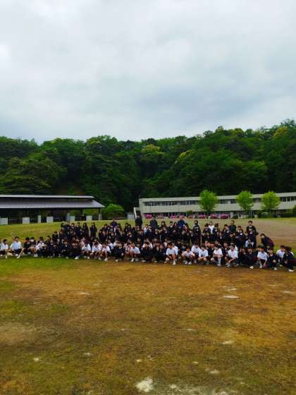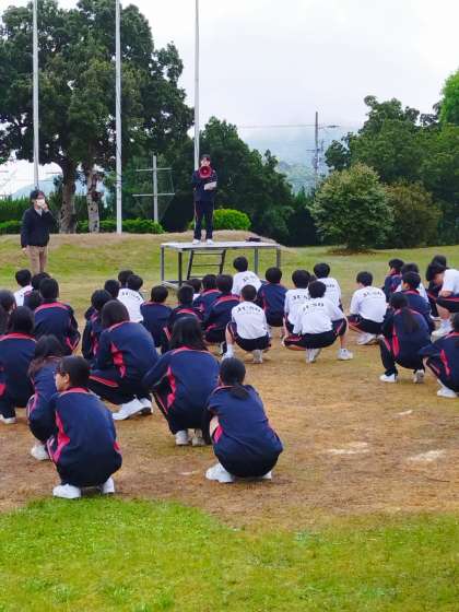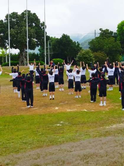 写真は朝の集いでのラジオ体操の様子と全体写真です。この後は部屋に戻って、清掃と食事準備です。