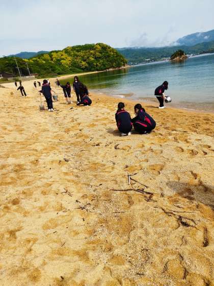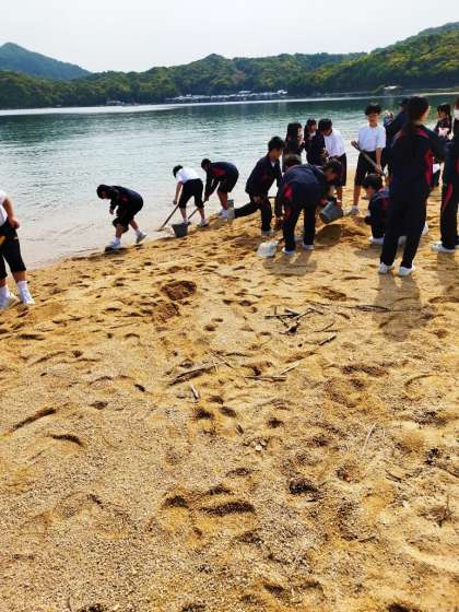 砂浜では砂の造形をしています。何ができ上がるのでしょうか?