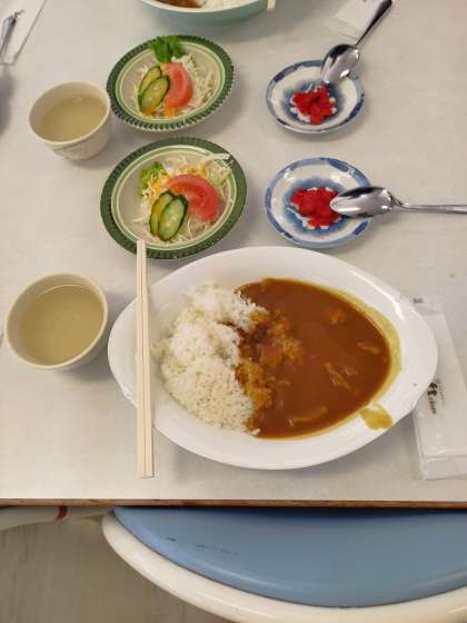 体験活動が終わり、昼食時間です。みんな大好きなカレーライス。たくさん食べてます。