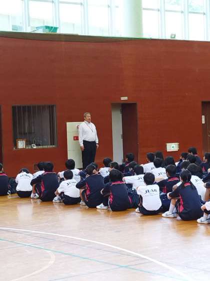 いよいよ一泊移住も終わりが近づいてきました。生徒代表の挨拶に続き、施設長さんからお話をいただきました。