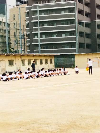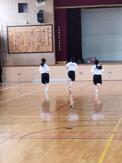 グラウンドでは男子が50m走を、体育館では女子がシャトルランをしていました。