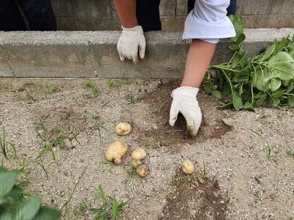 園芸部で丹精込めて育てたジャガイモを収穫しました!!