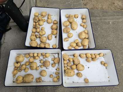たくさんのジャガイモが採れました!採れたジャガイモは、みんなで持ち帰って、美味しく頂きます。お世話になっている先生方にお裾分けもしましたよ!次は何を植えようかな?