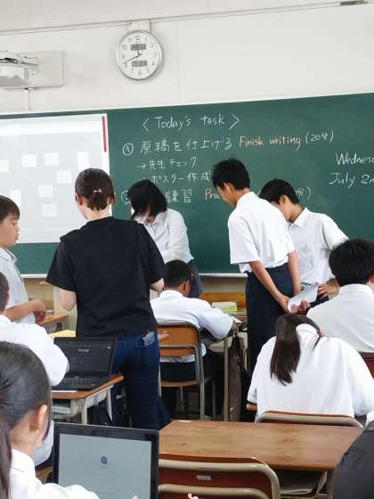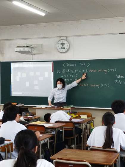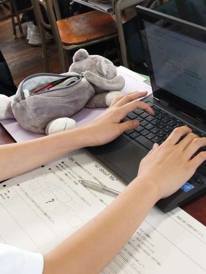 4限目、1年生の英語の研究授業が行われました。「自分の好きなことについて、繋がりのある文章を書く」ことを目標に、原稿作成に取り組みました。また、その後はプレゼンの音読練習をしました。