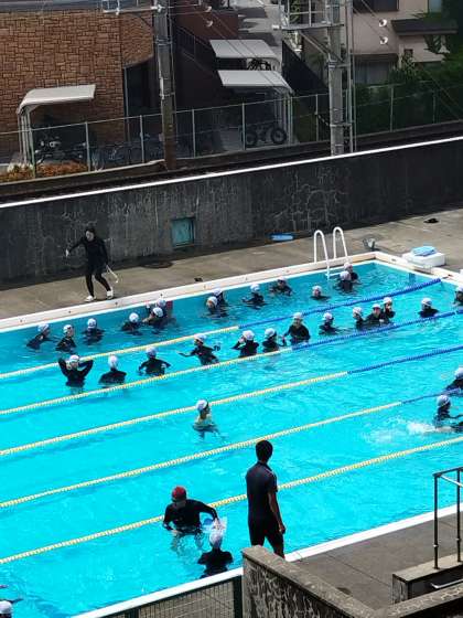 2限目は、1年生で体育の研究授業(水泳)を行いました。動作の確認やペアでの練習の後、クロールの実践テストをしました。