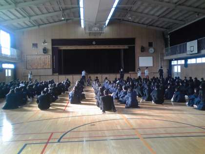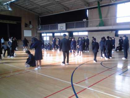 先日の1年朝の学年集会の集合の様子です。(左:8:30 中8:8:27 右:8:23)
