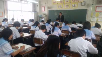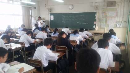 中間テスト、初日。1年生は緊張しながら、中学校初めてのテストです。テスト開始前に『頑張れ!』と手話をすると、うなずいてくれました。まさに『いっしょうけん命はかっこいい』です。