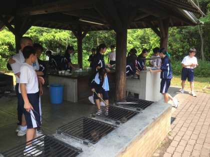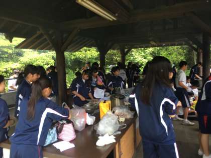 野外炊飯のスタートです。班長を中心にして、かまど班・調理班の協働作業です。果たして、美味しいカレーができるか‥‥‥。