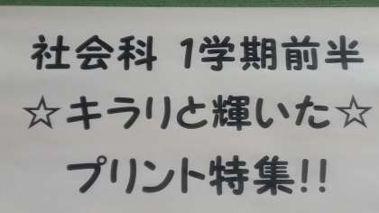 2年生の社会科では、毎回プリントを使って授業を行っています。そのプリントで特に素晴らしかったものを集めて掲示しました!どの生徒も毎回とても熱心に記入してくれています!『継続は力なり!』先生は期待しています。