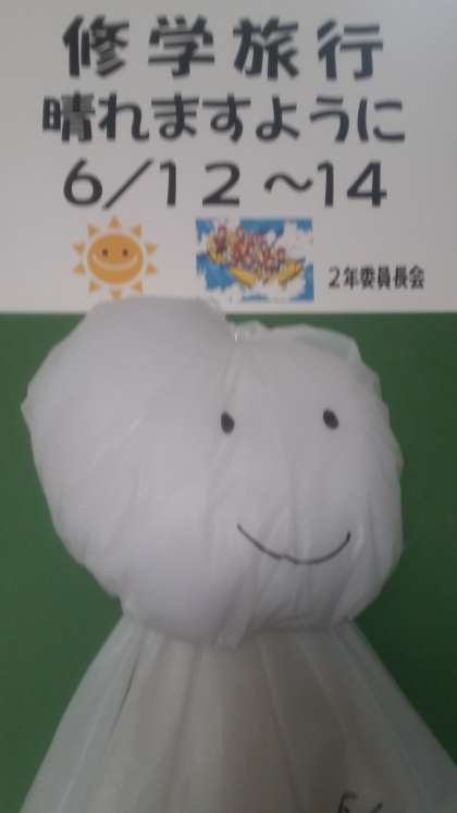 修学旅行2日目、6/13(月)は降水確率90%。テルテル、君の力を信じている。