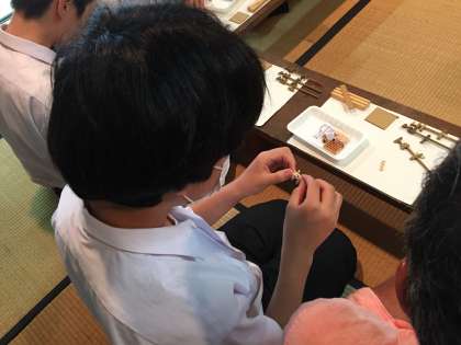 飛騨民俗村では「万華鏡」「My箸」「さるぼぼ」「ガラスフォトフレーム」「木製フォトフレーム」「千鳥格子」の体験をしました。作品を持って帰りますので、楽しみに!