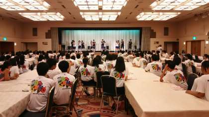 全員揃いのTシャツを着て、レク係が企画・運営するレクリエーション大会の開始です。内容は、秘密。帰宅してからのお楽しみ!
