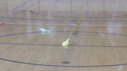 2年生の室内オリンピック。紙飛行機大会の部。大接戦です!