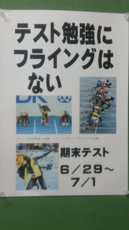 6月29日(水)〜7月1日(金)期末テストです。1学期の総決算です。一日一日を大切にしよう!