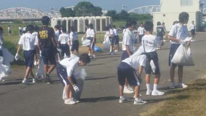 8月7日(日)午前8時より“なにわ淀川花火大会”の清掃ボランティアに参加しました。生徒会・2年生委員長会・剣道部・野球部・バスケットボール部、総勢130名が淀川河川敷の清掃活動を行いました。本校はあらゆる活動を通じて、ボランティア精神の浸透を目指しています。