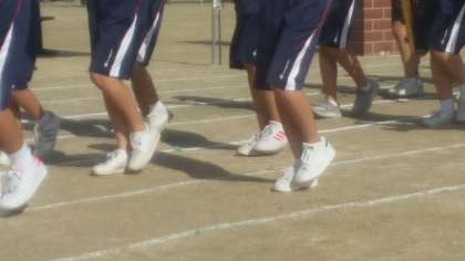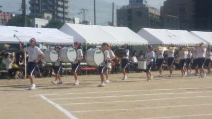 吹奏楽部の演奏(ファンファーレ)で開会式が始まりました。吹奏楽部の演奏に先導されてて、生徒会による校旗・生徒会旗です。
