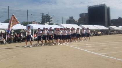 体育大会、校旗・生徒会旗に続いて、各学年のの入場行進風景です。