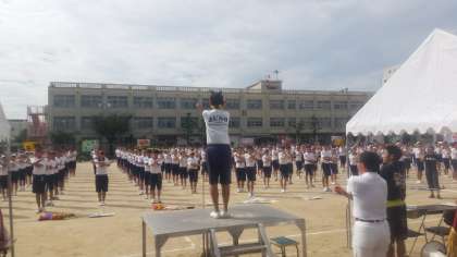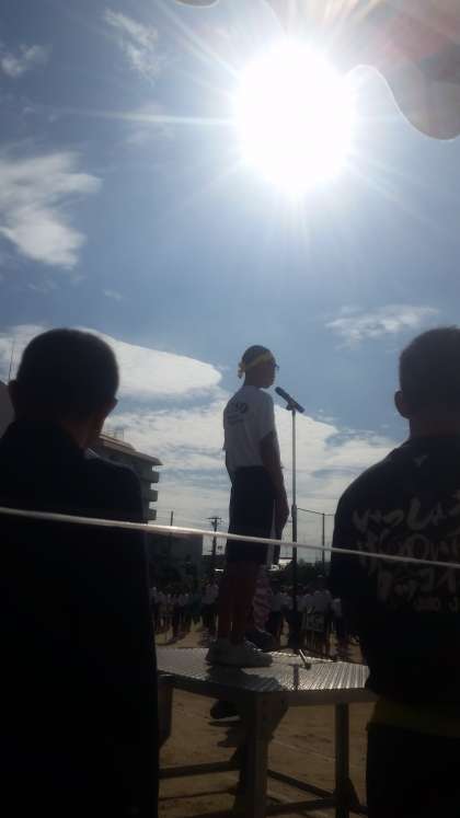 開会式の生徒宣誓とラジオ体操の状況です。