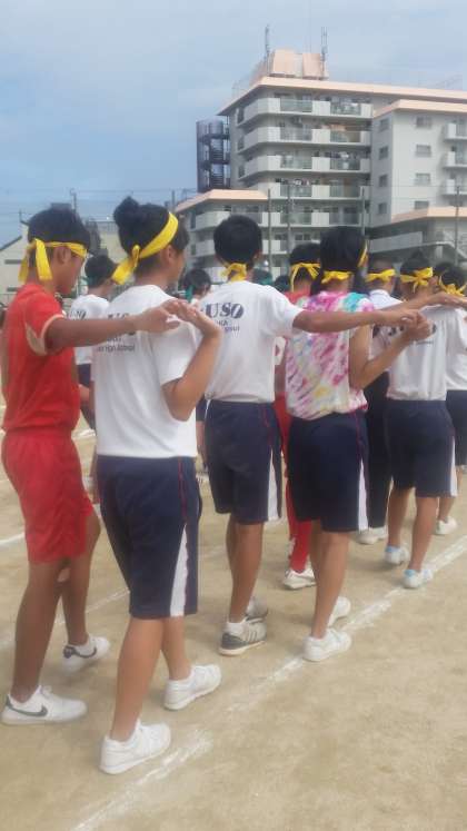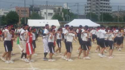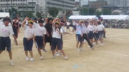 午後の部、最初のプログラム、フォークダンスです。全校生徒と教職員はファミリーになっています。