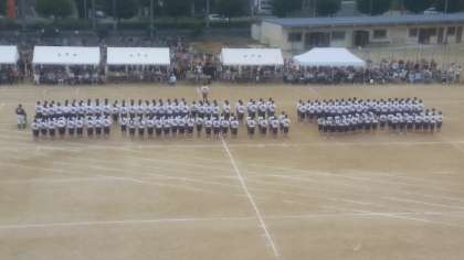 午後のプログラム、最後を飾るのは、3年生学年演技です。集団行動『心を一つ』というテーマで練習を重ねてきました。その成果をご覧ください。