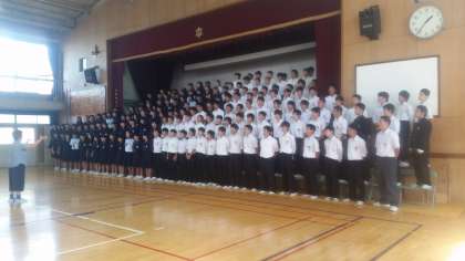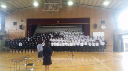 3年生全員で歌う『大地讃頌』。音楽科の指導のもと、練習にもかかわらず、素晴らしい歌声が体育館に響き渡りました。