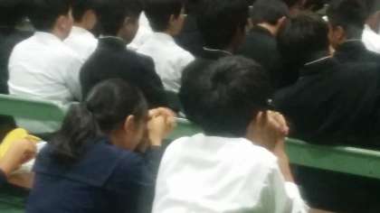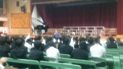 学年主任(司会者)が文化祭に出場するクラスを発表しました。結果は“3組”“4組”となりましたが、どのクラスの合唱も素晴らしく甲乙つけがたい程でした。全クラス、『優』です。