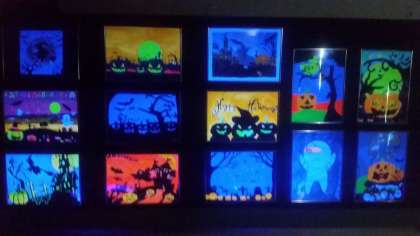 ブラックライトに反応して光る特別な絵の具でハロウィンを表現してみました。幻想的な世界をお楽しみください。