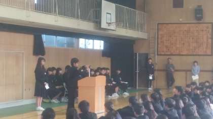 生徒会立会演説会(後期)を実施しました。立候補者とともに応援者の演説も立派でした。十三中学校を新たに牽引するリーダーの誕生です。