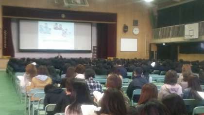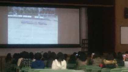 11月14日(月)〜18日(金)にある進路懇談に向けての進路説明会です。生徒の進路決定に大きく左右するため、まさに真剣そのもの。説明会後は、体育大会の集団行動のDVDを鑑賞しました。