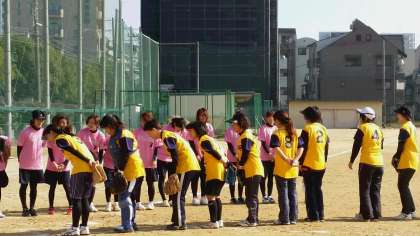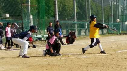 小春日和のなか7校PTAソフトボール大会が開催されました。初戦は、野中小に19対0で勝利をおさめました。