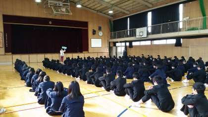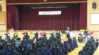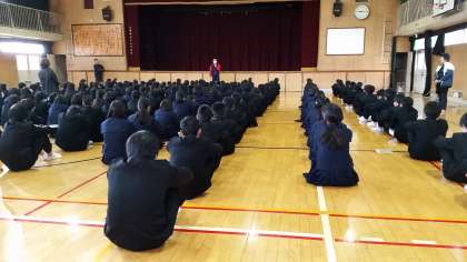 2学期最後の学年集会の様子です。今年度の冬季休業(12/23〜1/9)は長いので、生活指導に関する諸注意が各学年ともありました。3年生は年が明けると入学試験に臨むのできめ細かい進路指導、2年生は約15分間、吹奏楽部のミニコンサートで和やかな雰囲気となりました。 [写真は上から1年生・2年生・3年生です。]