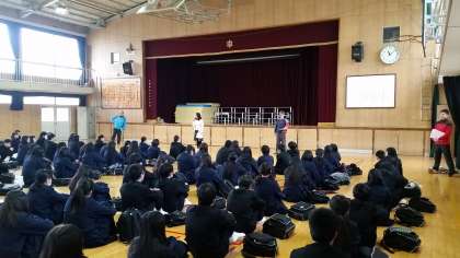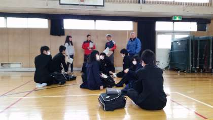私立高校出願です。全生徒への最終確認指導後、受験校ごとに分かれて、『いざ、出発です!』『祈!交通安全・私立高校合格』
