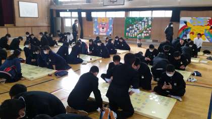 1月25日(水)午後に2年生の百人一首大会が開催されました。上の句を詠むだけで下の句を札をとる生徒もいました。『百人一首の決まり字』を知っているのかもしれません。優勝は、4組でした!