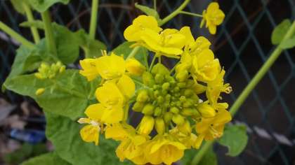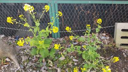 プールの側に、小さな春を見つけました。菜の花(2株)が咲いていました。一歩一歩、春は近づいています。3年生の春(合格通知)、もうすぐです。