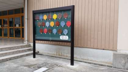 平成29年4月22日(土)に本校は創立70周年を迎え、記念式典を土曜授業として実施いたします。それに先立ち、70周年記念事業委員会より、掲示板を寄贈していただきました。生徒の作品等を掲示して、教育活動の発信起点として活用させていただきます。