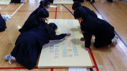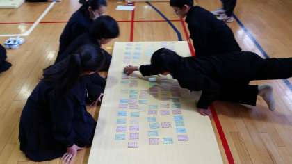 当初1月26日に予定されていた百人一首大会。インフルエンザの流行のため、3月7日に延期となりました。集中して取り組んでくれるだろうかという不安は、一蹴されました。決まり字に瞬時に反応する生徒も多く、2年生でのさらなる成長が期待されます。