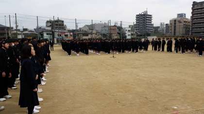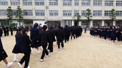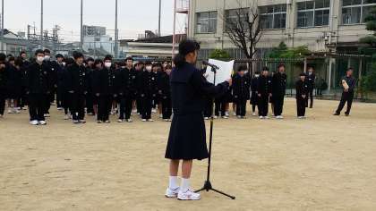 1年生と2年生・3年生の対面式です。在校生代表と新入生代表が挨拶を交わしました。新入生の力強い挨拶に、今後が楽しみに思えました。1年生、日々進歩あるのみ!