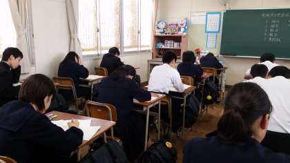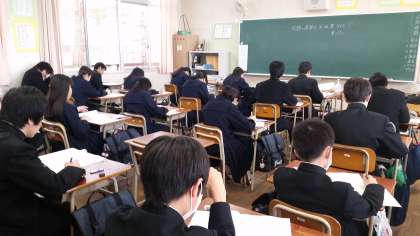 3年生が「全国学力・学習状況調査」に取り組んでいます。単なる正答数にとらわれずに、個々の課題を見つける資料とするテストです。たとえば、方程式の問題は得意だが、図形の問題は苦手だ。入試までに図形に対する知識・理解を深めようなど!学力向上の契機になることを期待しています。