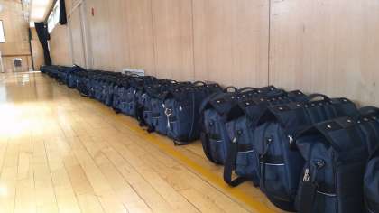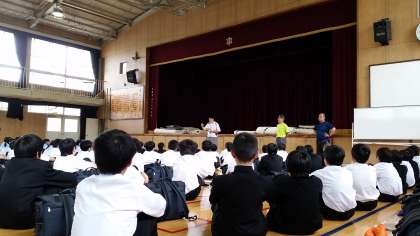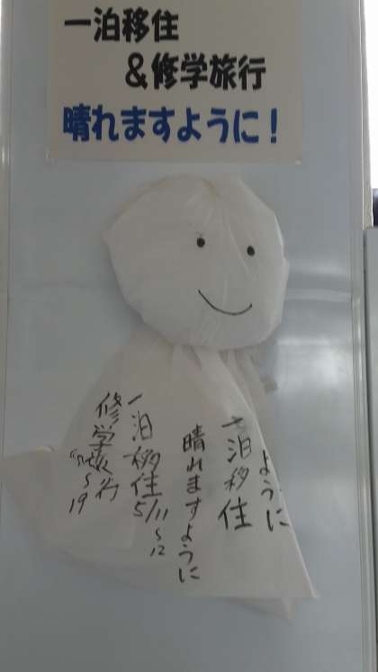明日から一泊移住です。直前の事前指導で、集団行動を訓練しています。カバンの並べ方も指導され、厳しさの中で人間的伸長を図ろうとしています。