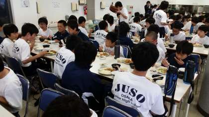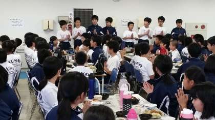 体験学習を終え、お腹ぺこぺこになった生徒たち。待ちに待った夕食の時間です。