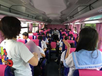 委員長が中心となって、ビンゴゲームやクイズ大会を運営しています。豪華景品(?)をゲットする生徒も‥‥‥。初日から、観光バスも生徒もエンジンフル回転です!