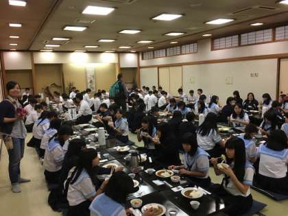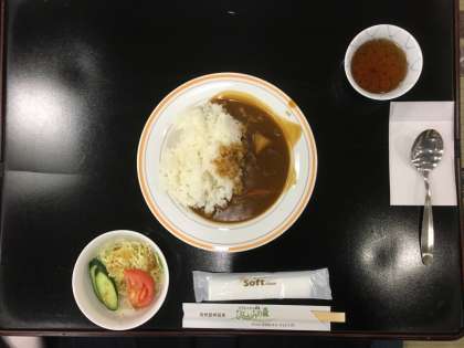 宿舎での昼食です。メニューはカレー。ラフティングに向けての腹ごしらえです。