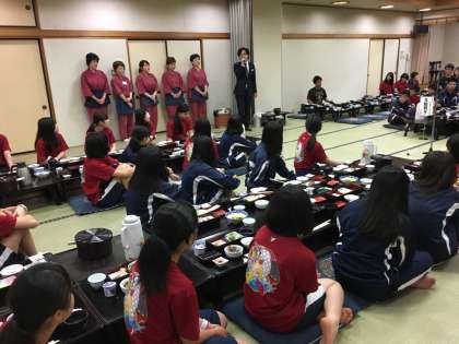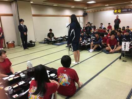 “リフレッシュ in ひるがみの森”の従業員の皆様、お世話になりありがとうございました。修学旅行1日目の良き思い出ができました。退所式で代表がお礼の挨拶をしました。それでは2日目『いざ、出発!』