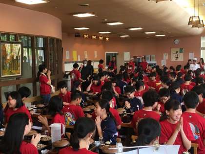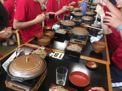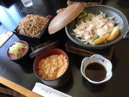 体験学習を終えて、“そばの城”にて昼食です。ボリューム満点の名物“蕎麦定食”です。ファームステイに向けてエネルギー充填完了!