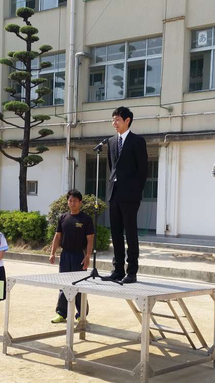 教育実習生は、吹奏楽(フルート・パーカッション)・陸上競技・バスケットボールの経験があります。部活動にて生徒とのかかわりを深めたいので、待っていてください! (By 教育実習生)