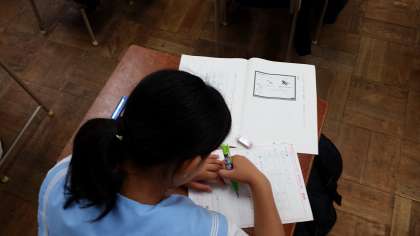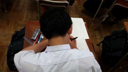 チャレンジテストは、大阪府教育委員会が調査結果を使って大阪府公立高等学校入学者選抜の調査書に記載する評定が、公平性の高いものであるかどうかを確認する資料を作成し、市町村教育委員会と学校に提供するために実施されます。十三中の生徒、一問必答!