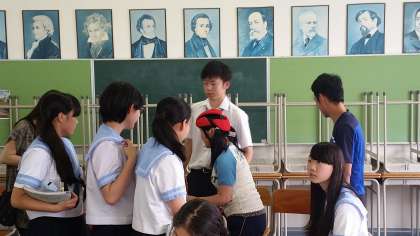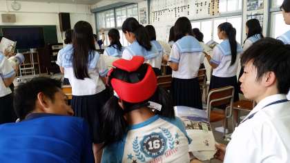 西淀川支援学校から居住地交流学習のために、十三中学校に来校しました。小学校での級友との1年ぶりの再会!お互い成長しています。